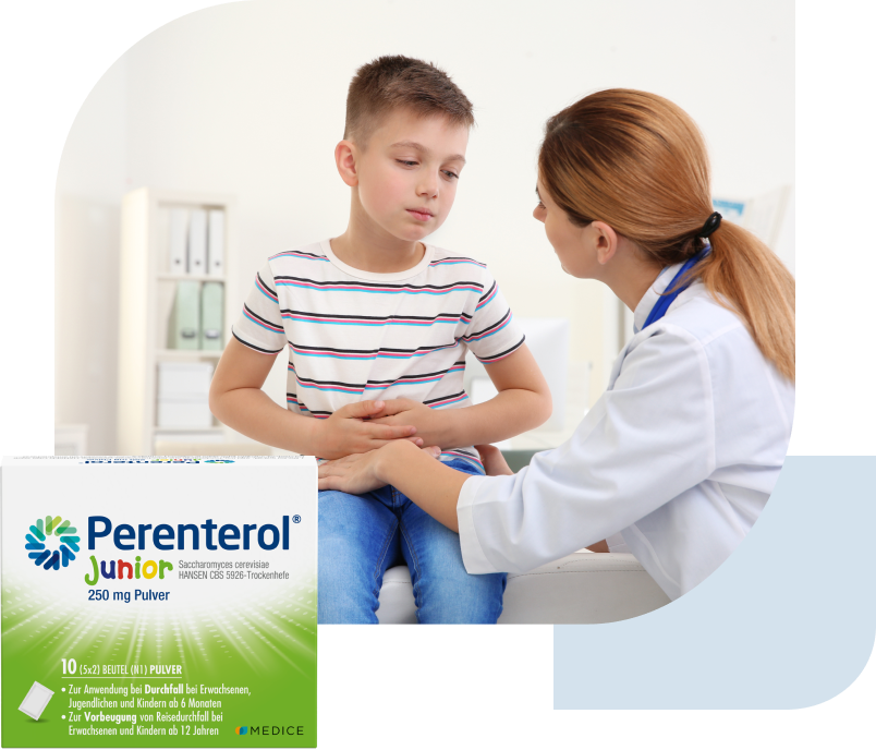Tipp: Probiotika, wie sie sowohl in Perenterol® forte als auch in Perenterol® Junior enthalten sind, gelten als wirksames Mittel gegen Durchfall. Nach Absprache mit einem Arzt kann Perenterol® Junior bereits als Medikament gegen Durchfall bei Babys ab 6 Monaten verwendet werden.